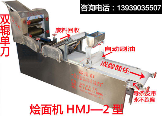 一品鮮研發(fā)的HMj-2型燴面機(jī),可生產(chǎn)方頭,栆核型、橢圓型等多種面坯,刀具形狀可根據(jù)客戶的要求專業(yè)定做,配套有380伏或220伏電機(jī),輸送帶周長4米,配備有面坯自動(dòng)刷油,廢料自動(dòng)回收等出色功能,避免以往老機(jī)型廢料不回收,刷油、即浪費(fèi)食用油、又影響面坯質(zhì)量等弊端。