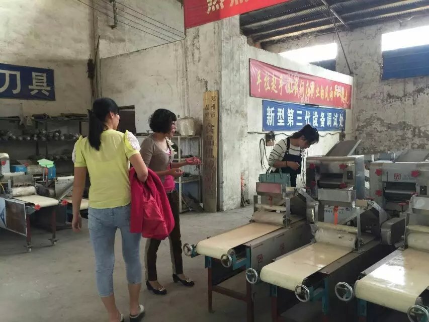 周口小伙和媳婦前來考察一品鮮燴面坯機(jī)生產(chǎn)設(shè)備