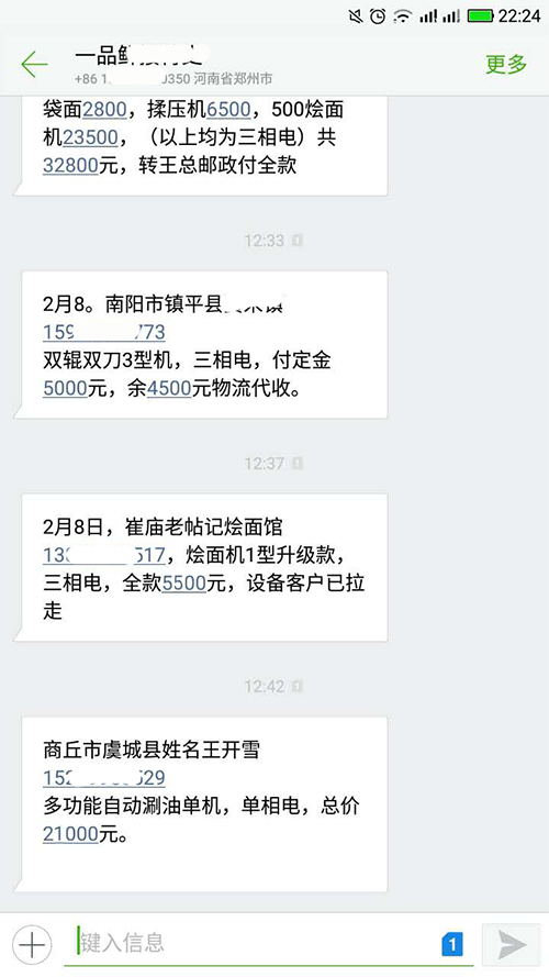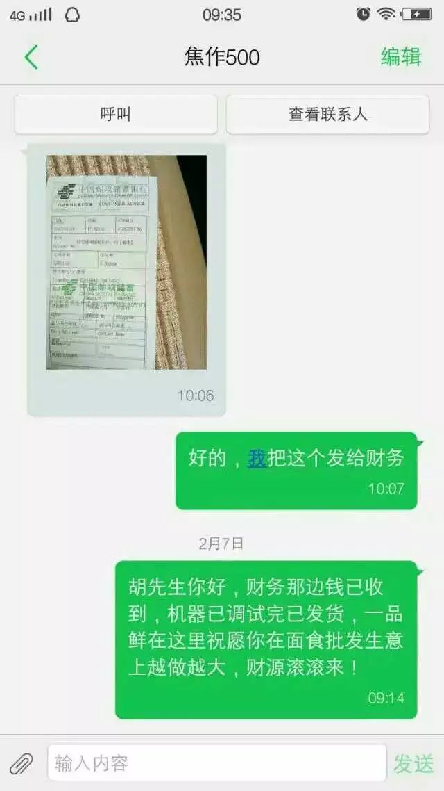 年后一品鮮迎來銷售旺季,節(jié)后一周內已經(jīng)有10批客戶訂機,前來考察的客戶更是絡繹不絕。而且很多客戶出于對一品鮮的信任,直接打款訂機,前幾天有濟源的胡先生,今天又是商丘虞城的王女士(訂第四代多功能成型機,可做拉條、拉面、扯面、多種面食,可自動刷油),南陽鎮(zhèn)平縣的宋先生(全套雙刀燴面機設備)。在此特別感謝大家的支持,正是一品鮮18載可靠的設備質量,產品口感,一傳十,十傳百的口碑,讓一品鮮設備一年比一年出色,更加節(jié)省大家的人力、物力、財力。一品鮮愿一直陪伴在您的左右,有任何需求請撥打咨詢熱線:139 3903 5507(手機/微信)