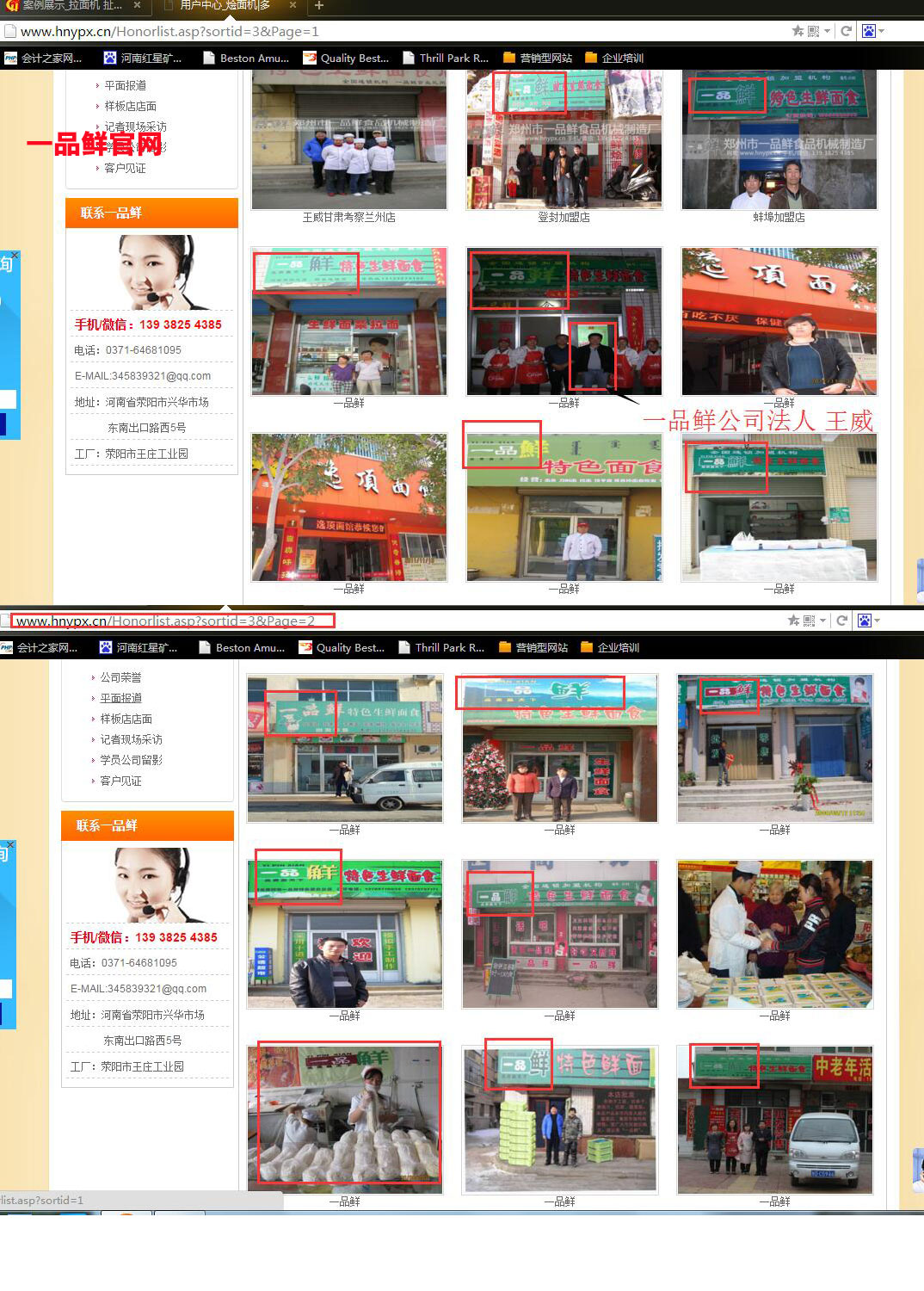 客戶案例中盜用一品鮮的客戶案例圖片,將店鋪門頭上的“一品鮮”字樣用圖片處理軟件擦掉,以起到蒙騙客戶的作用?尚Φ氖潜I用圖片中,一品鮮公司法人代表王總的照片也赫然在列。試問(wèn)這樣的廠家您敢選擇嗎?
