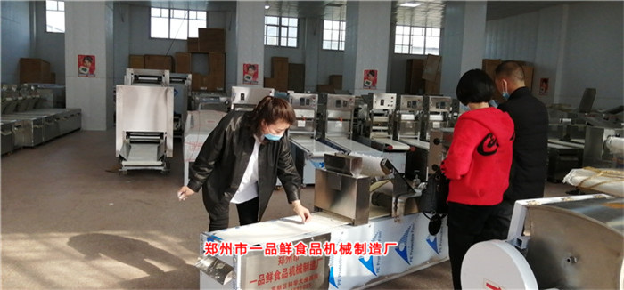 賈先生在鄭州開蔬菜調(diào)料干菜批發(fā)店,代賣燴面坯。感覺到生意不錯,利潤也挺高。所以準備購買一套設備在駐馬店泌陽縣做批發(fā)。經(jīng)朋友介紹來到一品鮮總部進行考察,F(xiàn)場定購批發(fā)用雙輥雙刀燴面機一套(價格2萬元左右)。